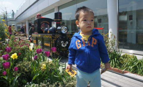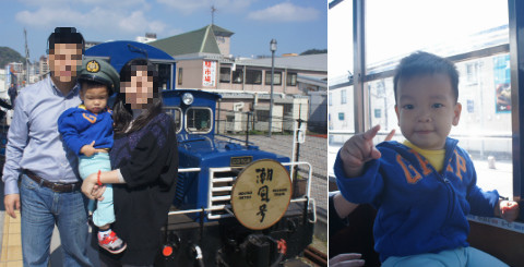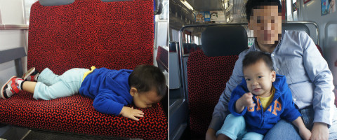 在小倉開往門司港的JR上,小娃兒開心的一直耍寶。