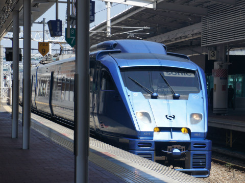 如願搭到sonic 883前往小倉,一整個開心。特徵是有像米老鼠耳朵的椅背。