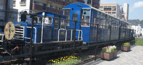 門司港的觀光列車「潮風號」,只有兩節車廂,很推荐體驗搭乘。