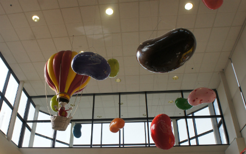 等待導覽區。掛在空中的Jelly Belly大娃娃。