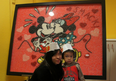 開始參觀前會發給每人一頂帽子。不小心幫小人戴反了。
